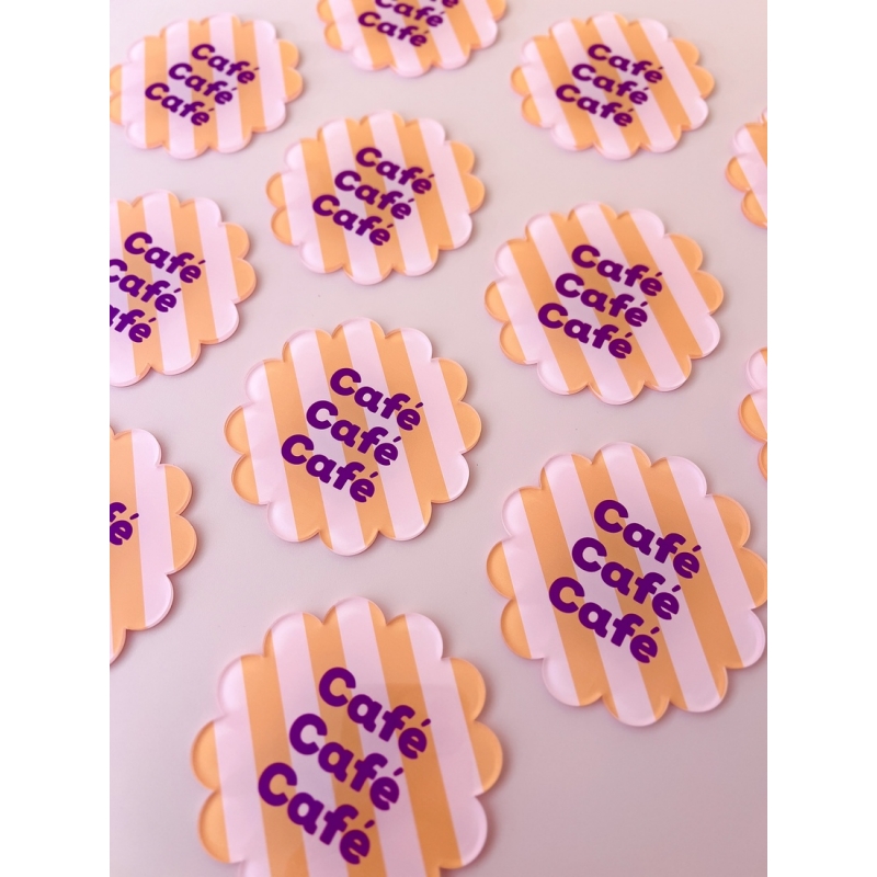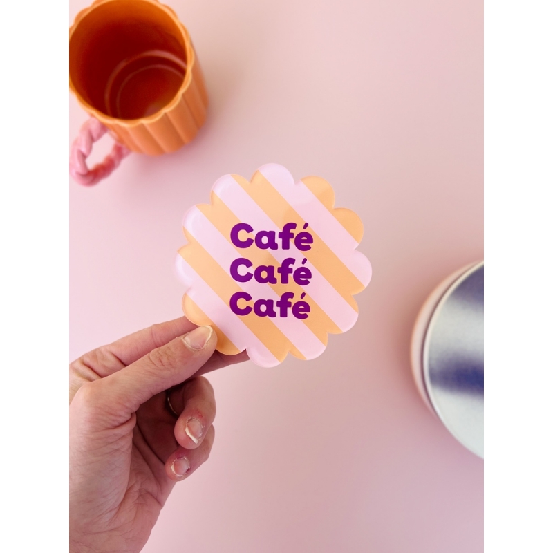 Apportez du style à vos pauses café avec ce sous-verre original “Café Café Café” au design rayé rétro et coloré.