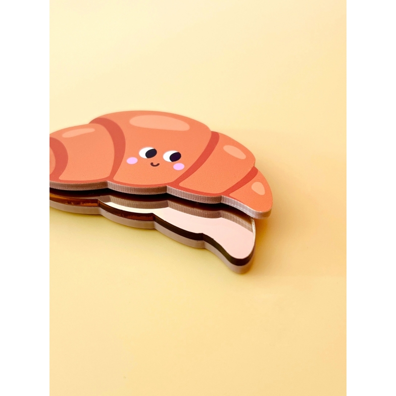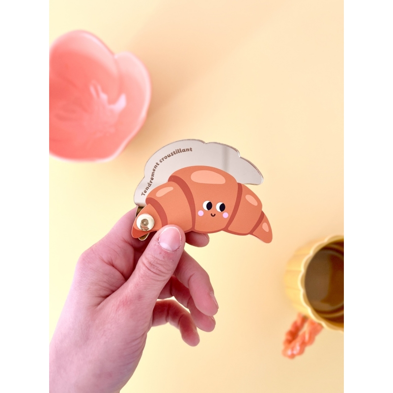 Le miroir de poche Croissant "Tendrement croustillant" est un accessoire à la fois pratique et plein de personnalité. Inspiré de l’univers du petit déjeuner, il reprend les codes gourmands du croissant avec une illustration joyeuse et un message décalé.