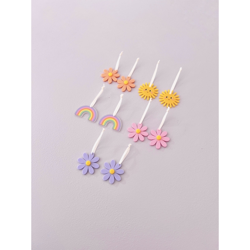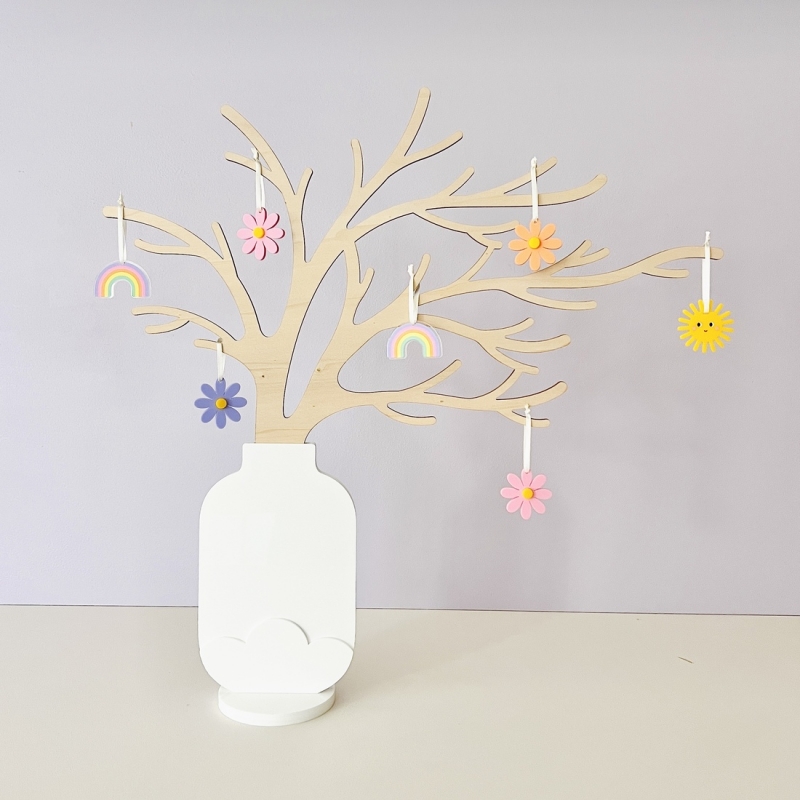 Associées aux suspensions arc-en-ciel et soleil du thème printemps, elles composent un univers pastel harmonieux, idéal pour accueillir les beaux jours.