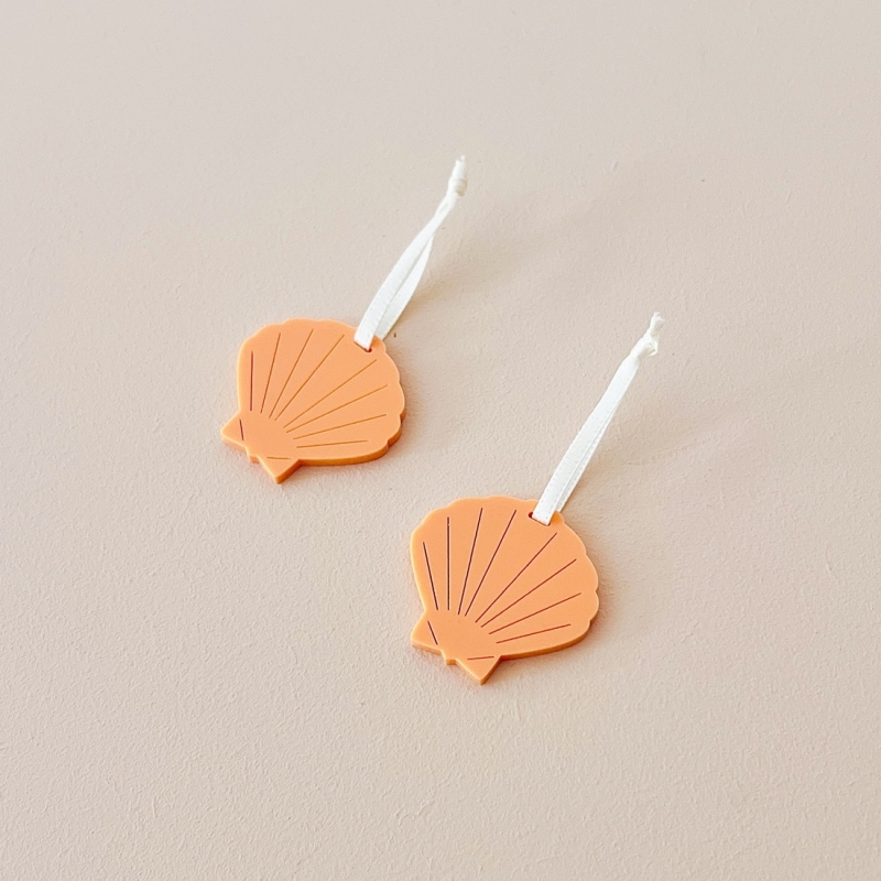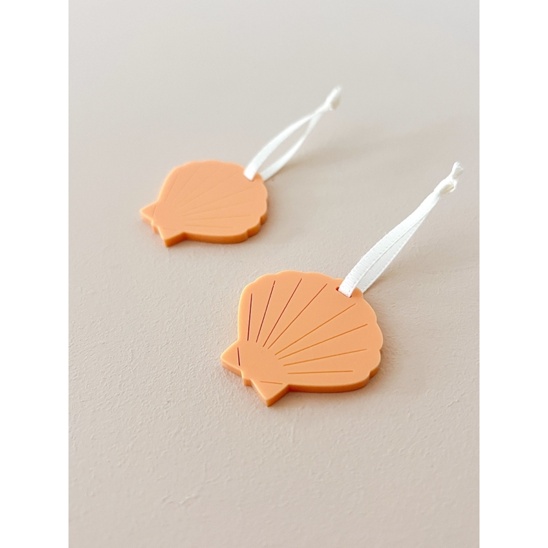 Lot de 2 suspensions coquillage en plexiglas orange avec ruban champagne, à suspendre pour décorer votre arbre à décorer au fil des saisons.