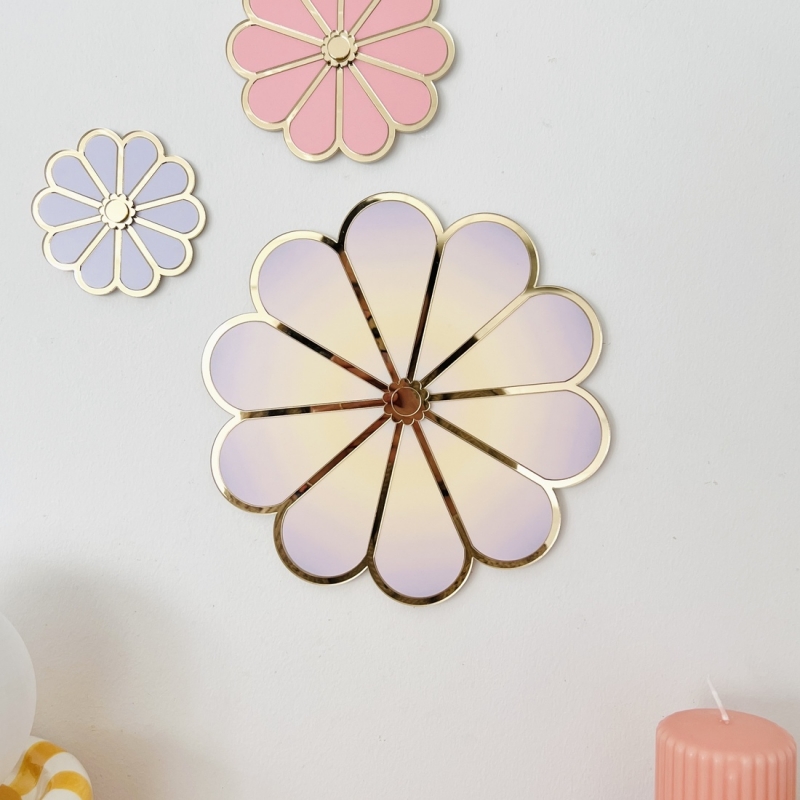 Fabriquée et assemblée à la main dans notre atelier en Alsace, cette décoration murale capte la lumière naturelle grâce au plexiglas miroir.