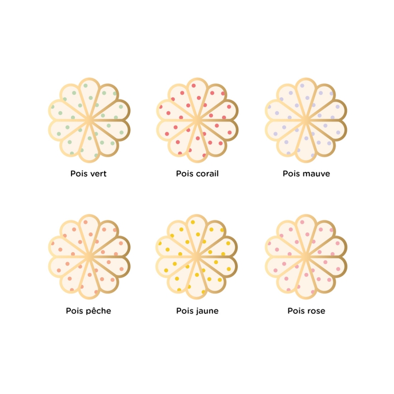 Disponible avec 6 coloris de pois, cette fleur murale permet de créer des compositions personnalisées, en mixant tailles et couleurs. Elle trouve facilement sa place dans une chambre, un salon, un espace créatif ou une boutique.