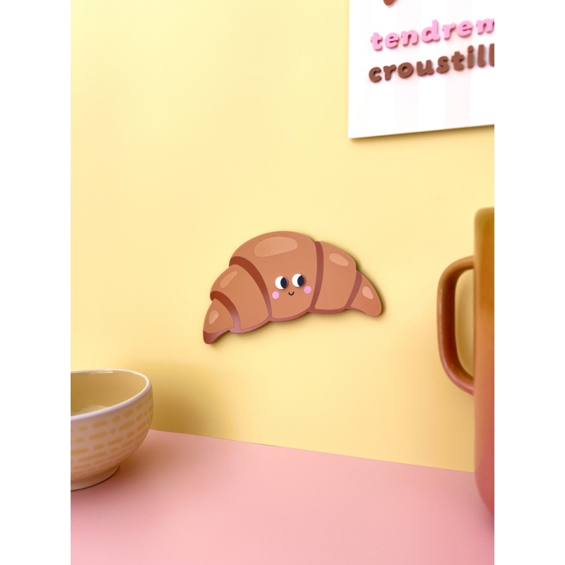 Accrochée au mur, cette décoration croissant devient un élément central de votre cuisine ou de votre coin petit déjeuner. Elle s’intègre parfaitement : au-dessus d’un plan de travail, près d’un espace café, dans une composition murale gourmande, aux côtés de la décoration murale brioche et des autres créations de la collection.