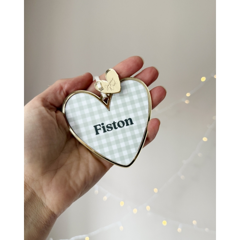 Apportez de l'authenticité à votre sapin de Noël avec ces suspensions Coeur en plexiglas et au motif vichy. Déclinées en différents coloris, elles sont mises en valeur par un contour miroir champagne et une breloque. Retrouvez une large sélection de textes affectueux (marraine d’amour, frangin, petite sœur, fiston…) pour de jolies décorations de Noël à s'offrir ou à offrir !
