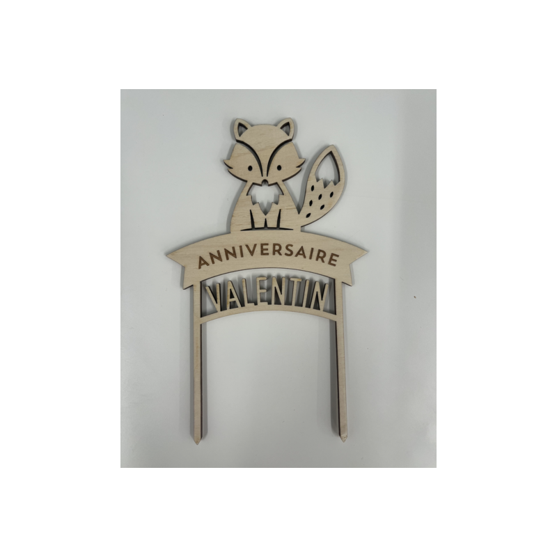 Cake topper anniversaire renard personnalisé au prénom VALENTIN