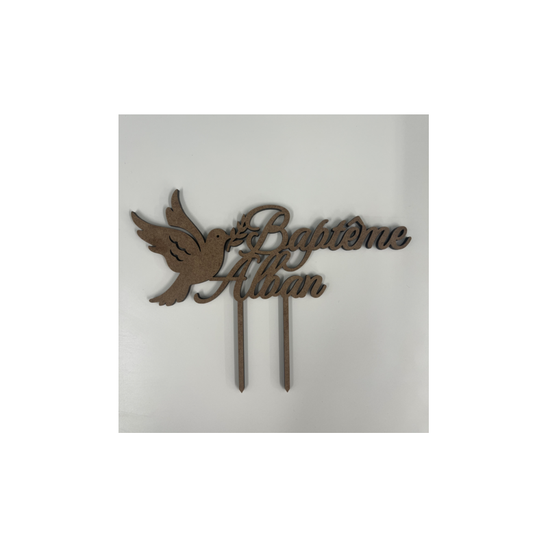 Cake topper baptème colombe personnalisé au prénom ALBAN