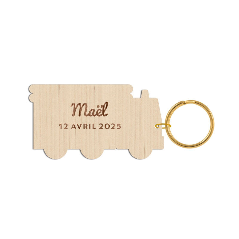 Joli porte-clés en bois plaqué en forme de camion de pompier. Parfait pour un petit fan des pompiers !