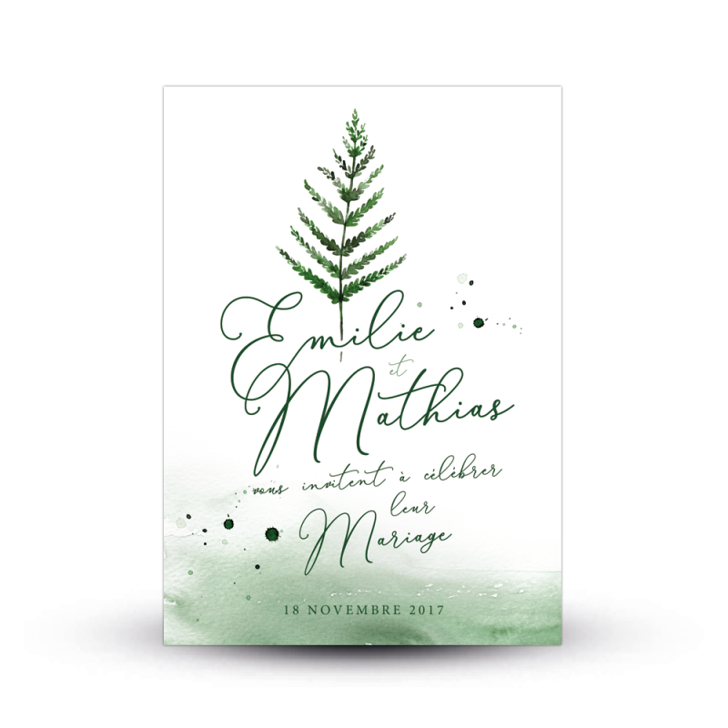 Faire-part de mariage Forêt thème végétal, peint à l'aquarelle Agrandir l'image