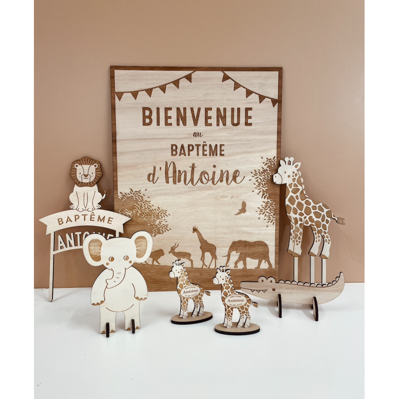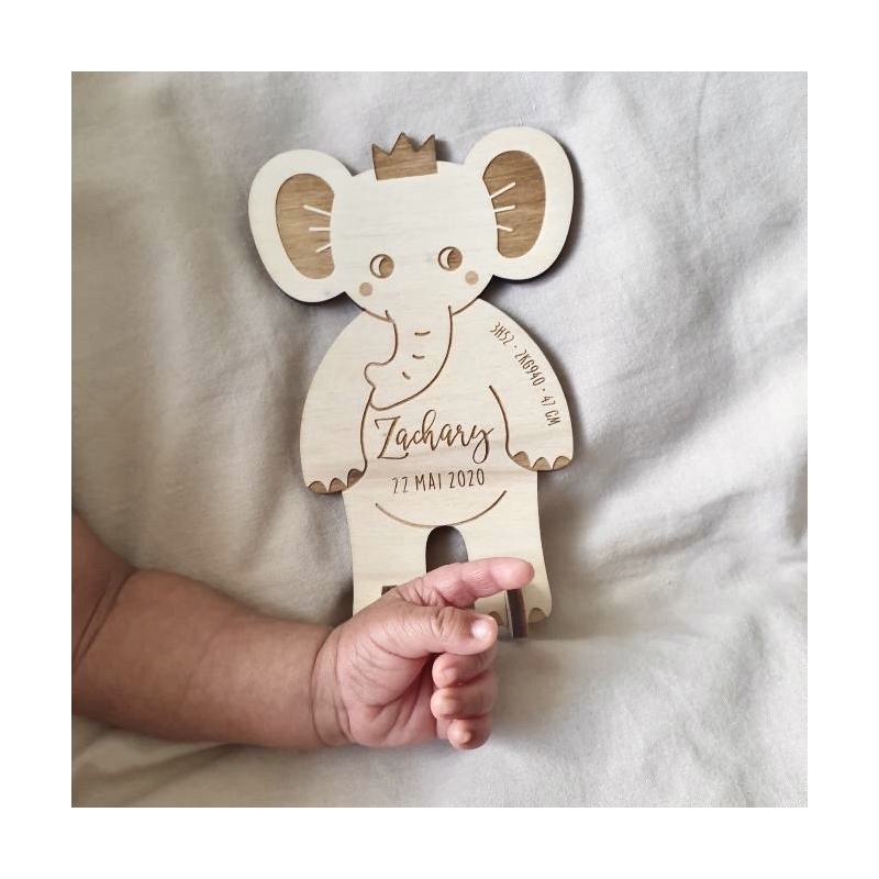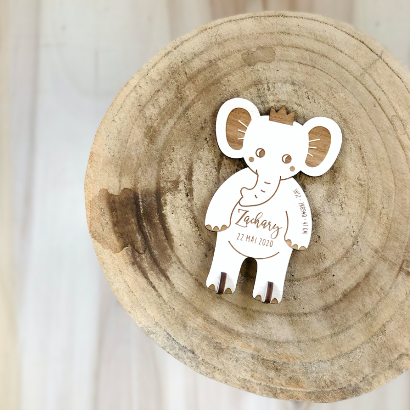 Vous cherchez un faire-part de baptême original et tendance ? Vous allez adorer ce petit éléphant en bois qui tient debout ! Grâce à de petits pieds en bois, vos invités pourront donner vie à votre invitation et l'utiliser en décoration. Vous pouvez personnaliser le recto avec les informations (prénom de l'enfant et jour du baptême) et ajouter au verso un petit texte d'invitation.