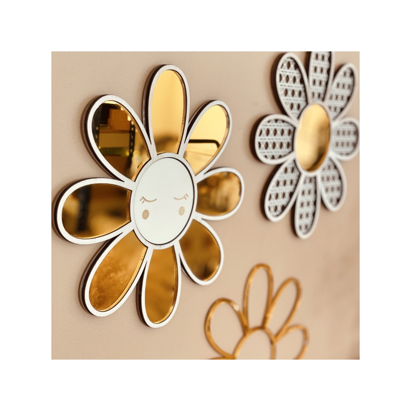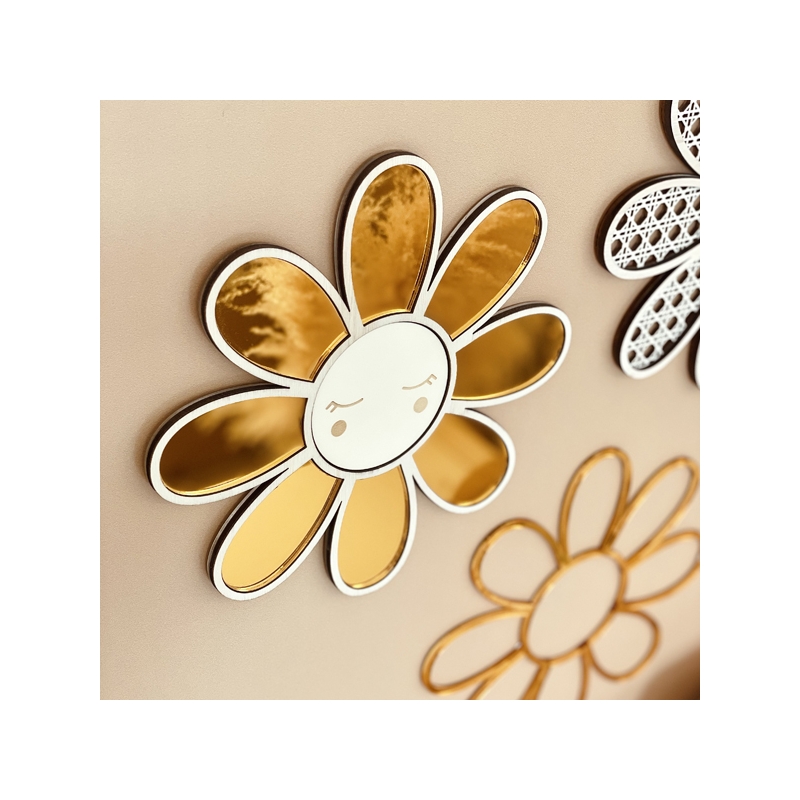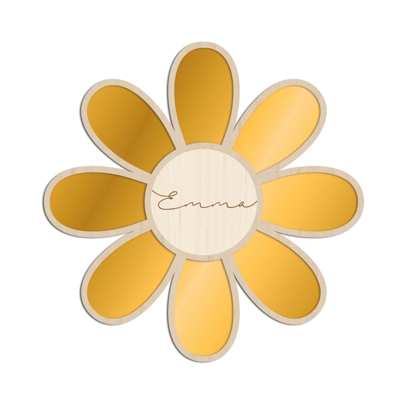 Ajoutez une décoration murale originale et personnalisée avec le prénom de votre enfant. Cette jolie marguerite en bois et plexiglas donnera du pep's à la décoration de chambre. Son principal atout ? Votre enfant pourra se contempler dans les pétales de chaque fleur et en même temps avoir son prénom finement gravé sur le coeur.