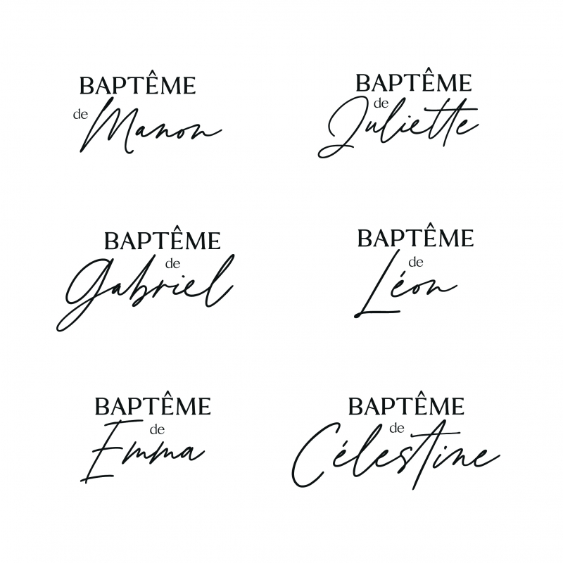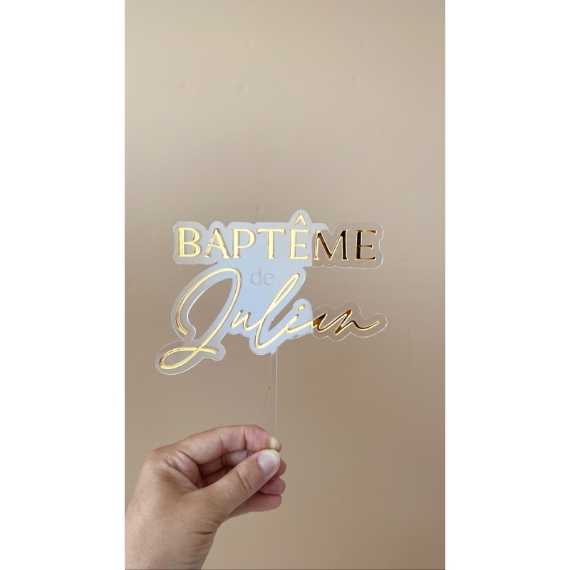 Cake topper baptême calligraphie 3, transparentCollection enfance