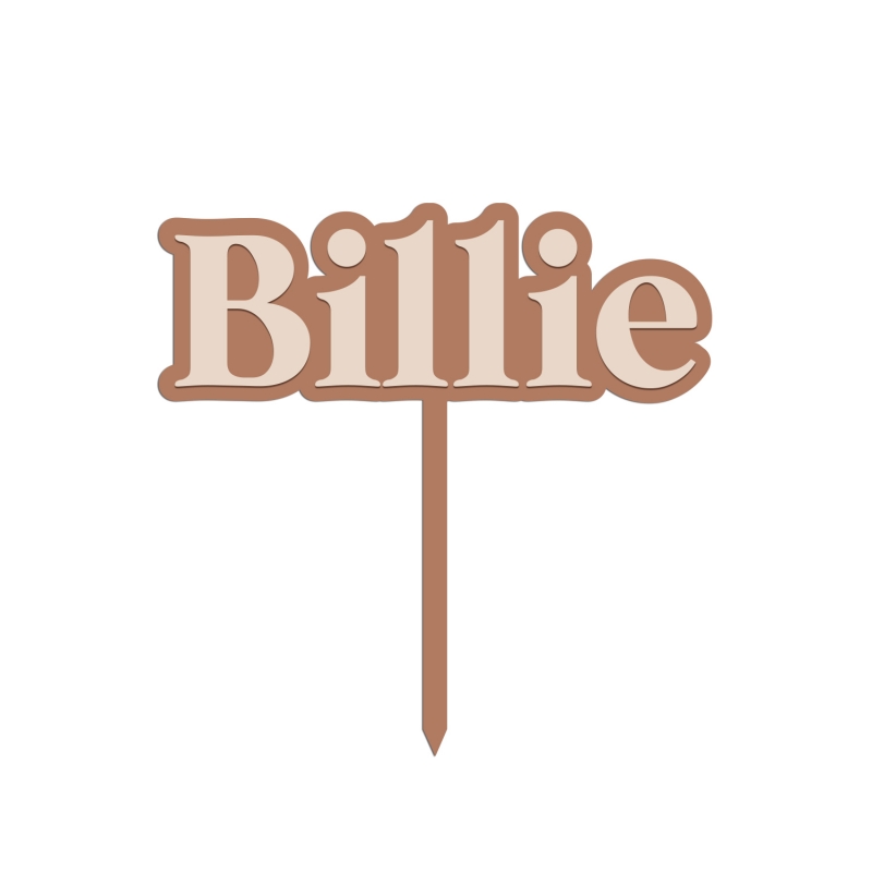 Joli cake topper en plexiglas à personnaliser avec un prénom. Vous pouvez choisir la couleur du socle et du lettrage pour avoir un rendu unique et coller à 100% à la décoration de l'événement. Ce modèle vous plaira pour sa police rétro et ronde qui donne du caractère à la pièce.