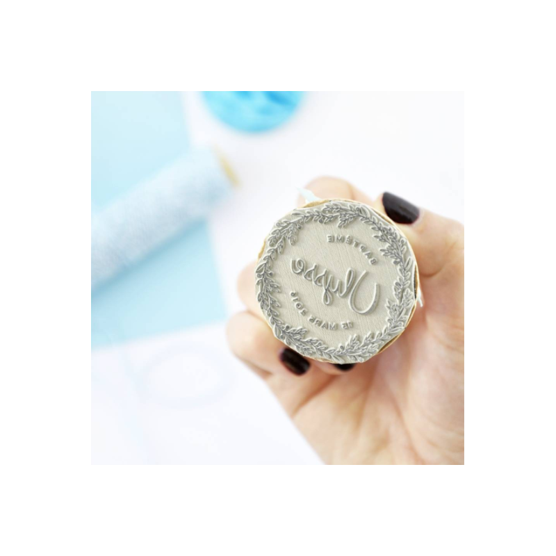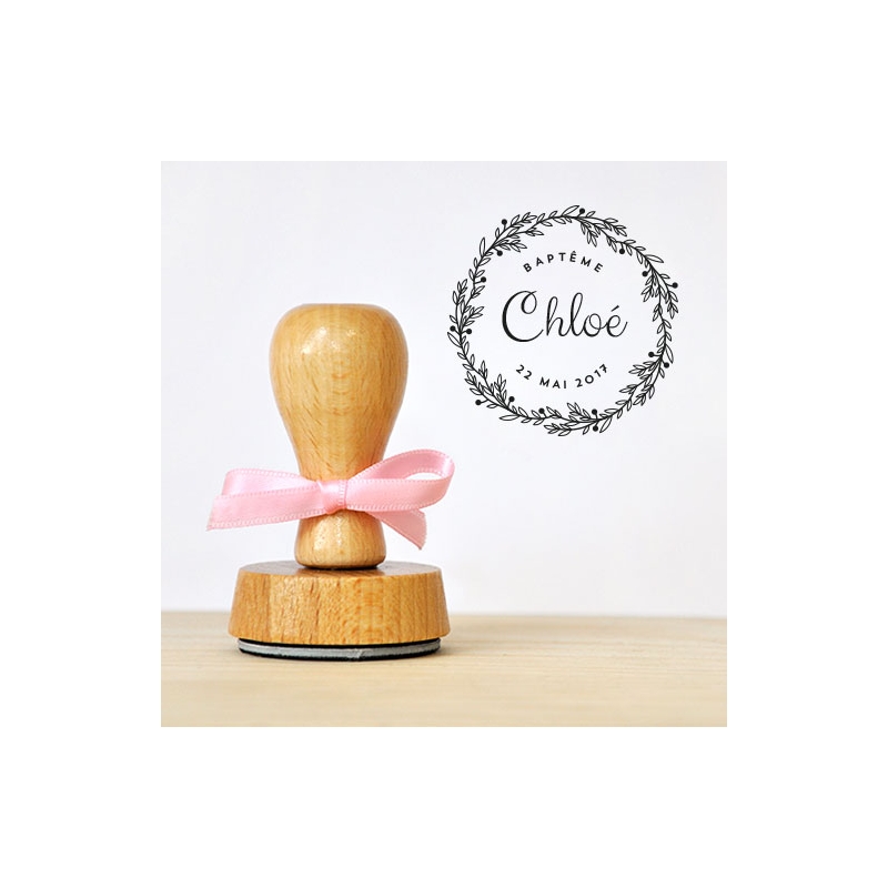 Personnalisez ce joli tampon en bois à l'image de votre enfant. Sa couronne végétale met en valeur le prénom de votre bébé pour un résultat champêtre et chic. Ce tampon personnalisé sera parfait pour estampiller les enveloppes des faire-part de naissance ou des invitations au baptême, mais également tous les supports de votre choix (vêtements pour la crèche, carnet de santé, album photos...).