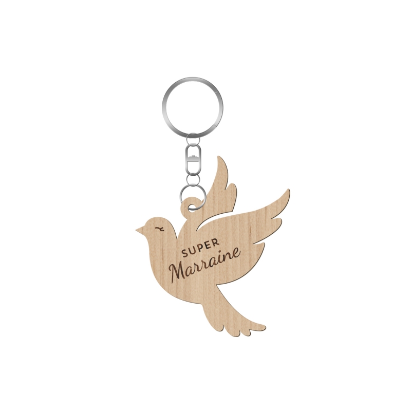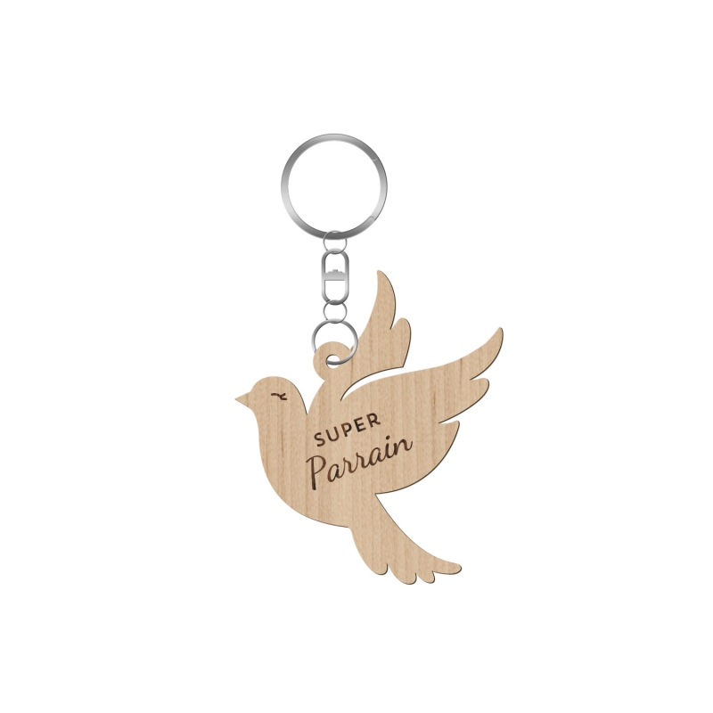 Laissez-vous séduire par ce joli porte-clés en bois en forme de colombe. Grâce à sa personnalisation au recto, vous pourrez l'offrir à vos proches suite à la naissance de votre enfant ou son baptême. Un cadeau unique et personnalisé qui fera plaisir à toute la famille !