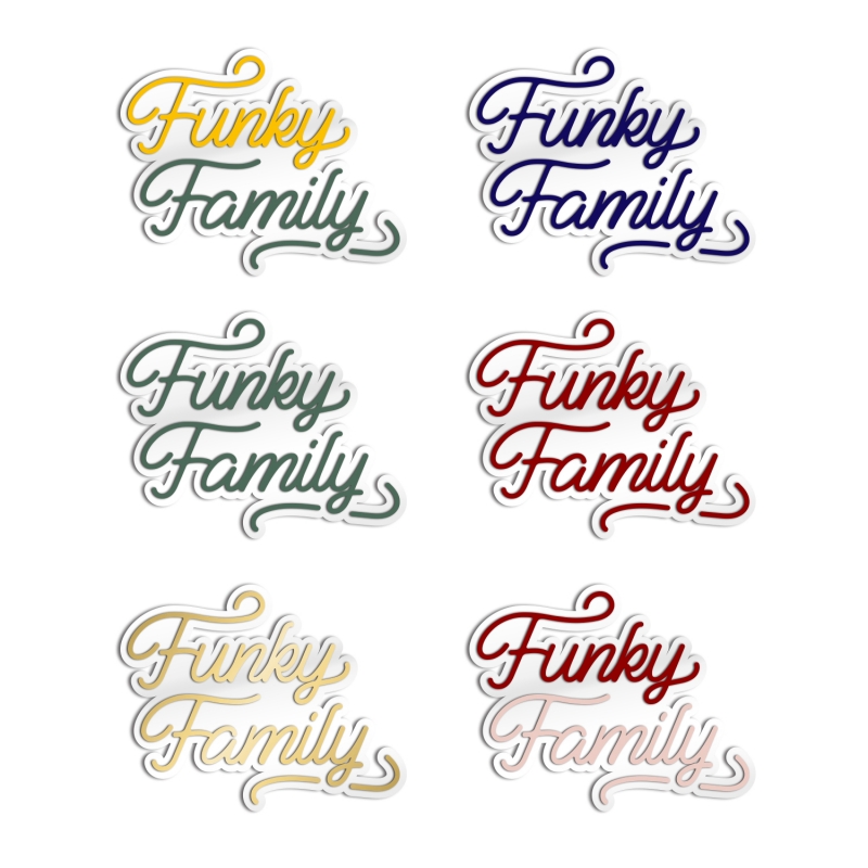 Le tarif comprend la découpe de l'enseigne "Funky Family" selon les matières et le format choisis dans les menus déroulants.
