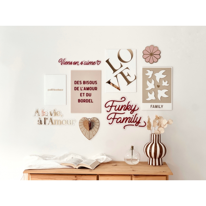 Ajoutez une décoration murale originale avec l'inscription "Funky Family". Le plus de cette enseigne ? Vous pouvez choisir le format et le(s) colori(s) afin qu'elle colle parfaitement à votre intérieur.