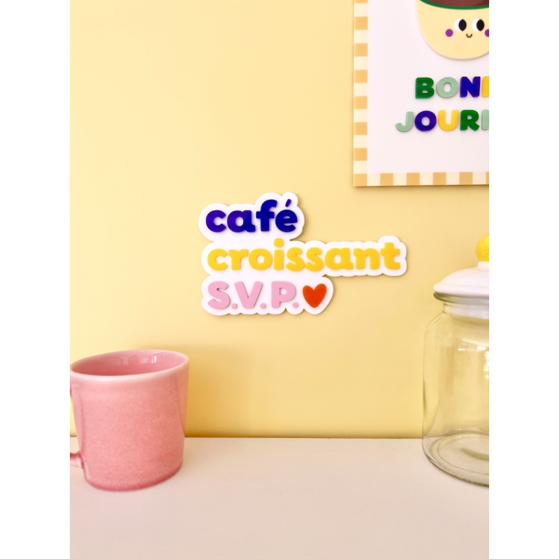Cette enseigne murale fait partie de notre collection Club P’tit déj, dédiée à l’univers coloré et expressif du matin. Associée aux décorations fruitées, aux affiches en plexiglas ou aux bijoux de mur gourmands, elle permet de composer un univers cohérent et affirmé. Parce que parfois, tout ce dont on a besoin, c’est d’un café et d’un croissant.