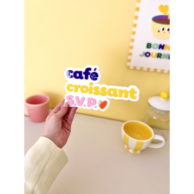 Avec son message "Café Croissant SVP", cette enseigne murale rend hommage au rituel incontournable du matin. Clin d’oeil aux cafés parisiens et aux petits déjeuners pris sur le pouce, elle insuffle une atmosphère chaleureuse et conviviale à votre intérieur.