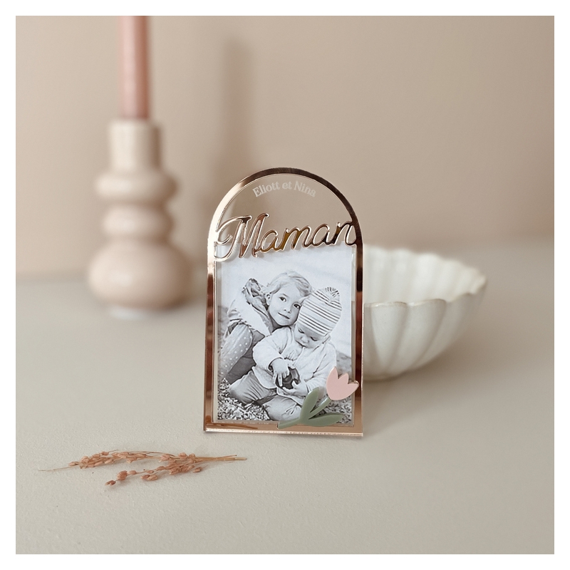 Vous allez adorer ce joli magnet en plexiglas en forme d'arche avec son espace dédié pour glisser une photo. C'est un petit cadeau original et unique à offrir à l'occasion de la fête des mères.