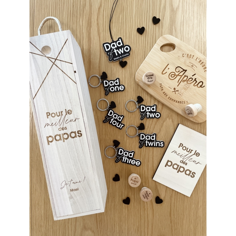 Découvrez notre caisse de vin en bois à personnaliser, le cadeau idéal pour célébrer la fête des pères. Le couvercle est personnalisable avec un petit mot et le ou les prénoms des enfants pour en faire un cadeau unique et significatif. Faites de la fête des pères un moment inoubliable en offrant ce coffret et une bonne bouteille de vin, un cadeau qui sera apprécié et chéri pendant des années.