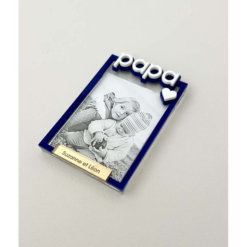 Vous allez adorer ce joli magnet en plexiglas noir, bleu nuit ou vert sauge avec son espace dédié pour glisser une photo. C'est un petit cadeau original et unique à offrir à l'occasion de la fête des pères.