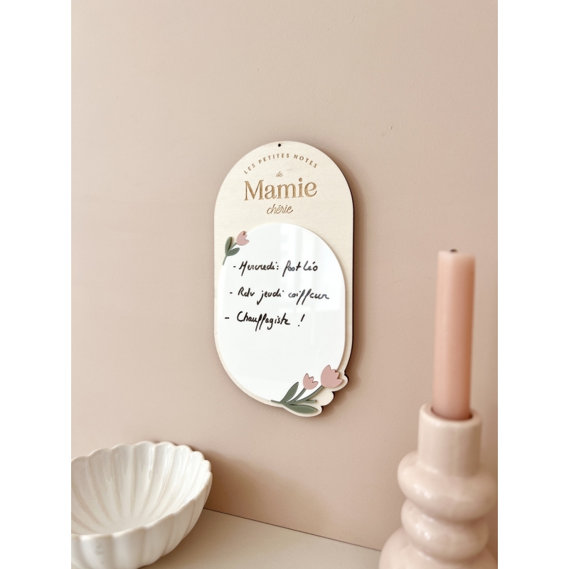Pour la fête des grand-mères, offrez un cadeau utile : un petit tableau mémo réutilisable. La surface en plexiglas blanc permet d'écrire à l'infini avec un marqueur effaçable, de quoi mettre constamment à jour ses mémos ou sa liste de courses.