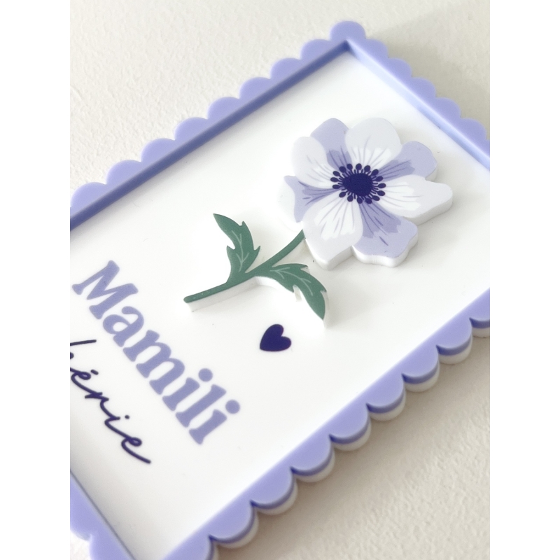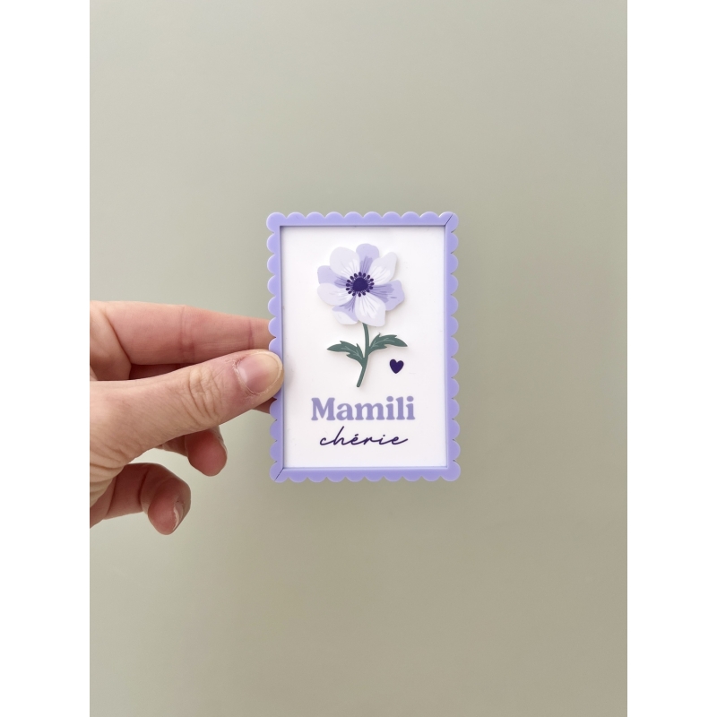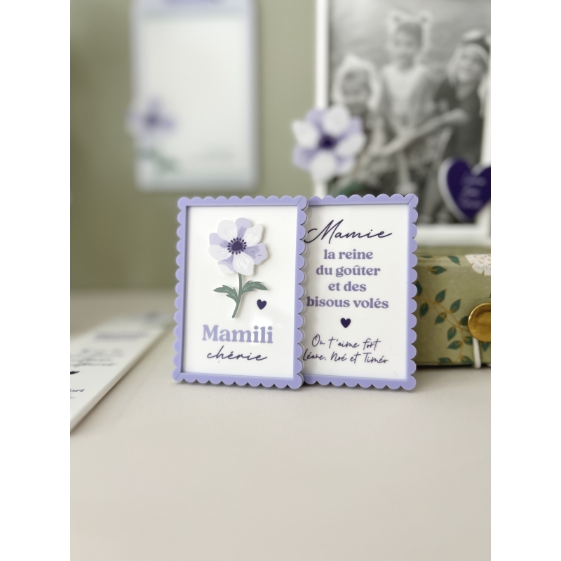 Pour la fête des grand-mères, offrez un magnet personnalisé en plexiglas. Illustré d’une élégante anémone blanche et violette, il décorera parfaitement son frigo. Pour en faire un cadeau 100% unique, ajoutez son petit surnom (Mémie, Mamili, Mamie Tracteur...).