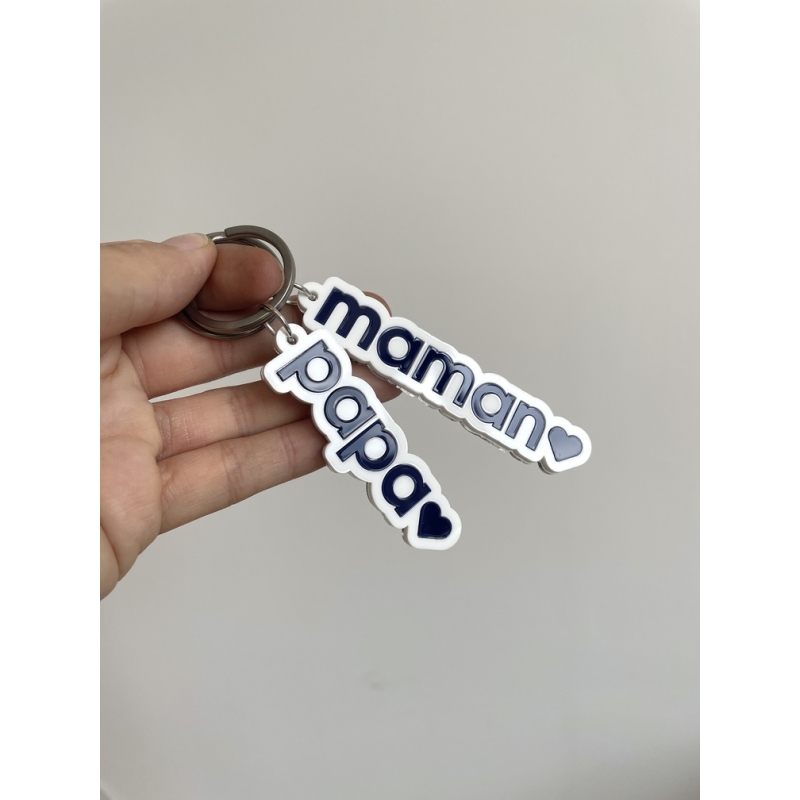 Vous allez adorer ce joli porte-clés en plexiglas bi-couleurs avec l'insciprton "papa" ou "maman". Ce grigri porte-bonheur donnera du pep's à votre trousseau de clé.