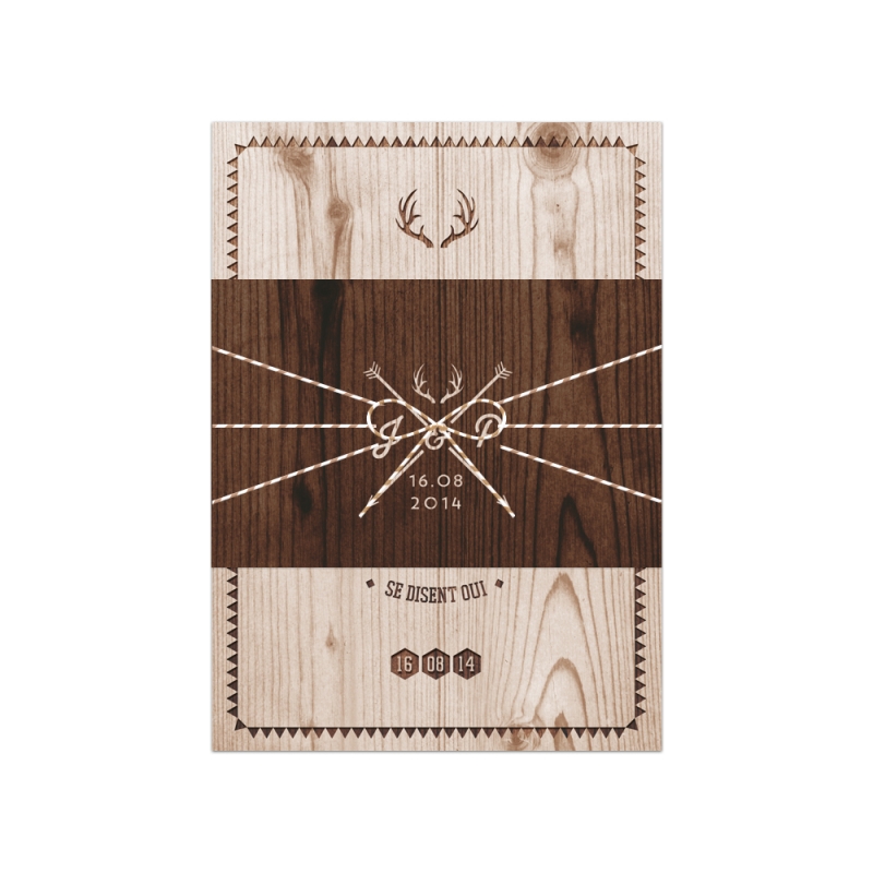 Invitation mariage bohème imprimé bois Natura Agrandir l'image