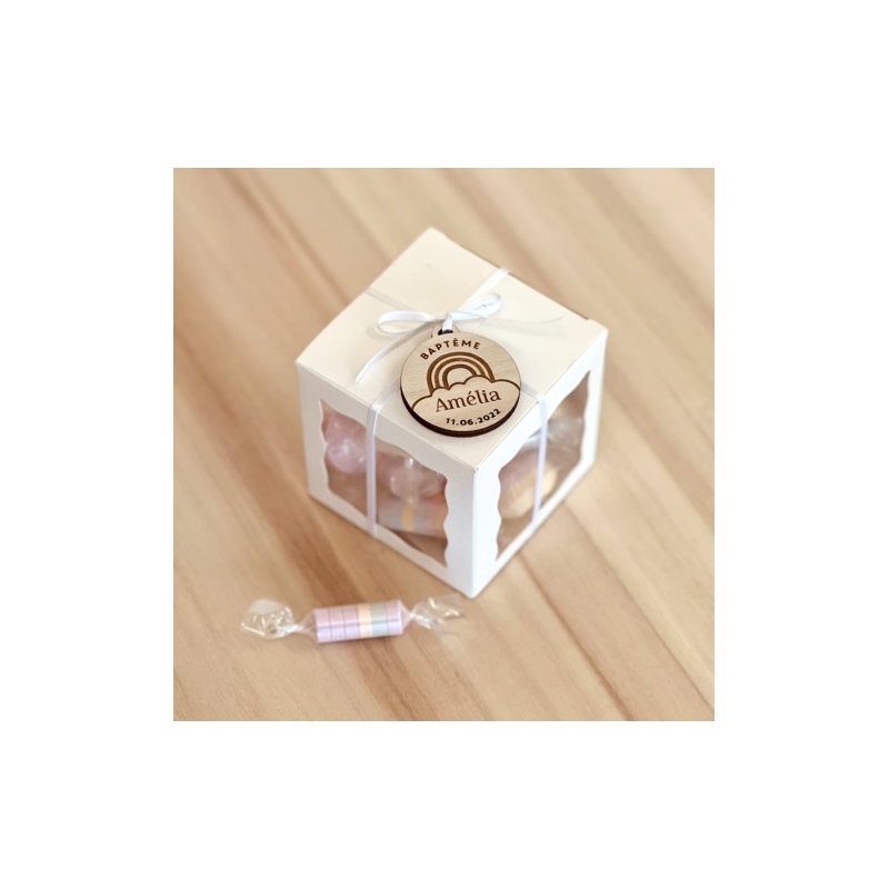 Pour votre mariage, ajoutez des petites étiquettes personnalisées sur vos cadeaux d'invités. Ainsi, vous pourrez les customiser avec élégance à petit prix ! Vous pouvez choisir entre plusieurs dimensions (de 4 cm à 6 cm) et dans une multitude de matières (bois brut, bois plaqué ou plexiglas).