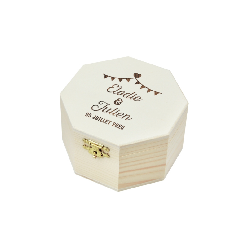 Cette jolie boîte en bois octogonale ou carrée sera parfaite pour accueillir vos alliances avant le grand "Oui" !