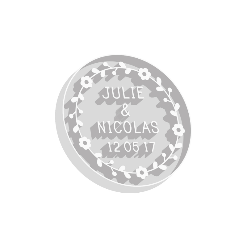 La commande de l’emporte-pièce comprend la personnalisation de vos prénoms et de votre date, ainsi que sa fabrication.