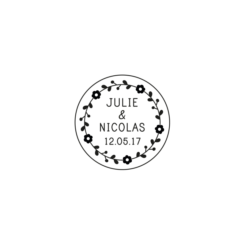 Réalisez de mignons sablés personnalisés et fait maison en guise de cadeaux d'invités pour votre mariage. Print Your Love vous propose de personnaliser un emporte-pièce à votre image avec prénoms et date. Son illustration de couronne de fleurs sera parfaite pour un mariage champêtre.