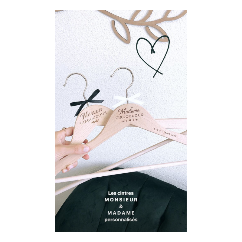 Future mariée, offrez-vous un joli cintre en bois personnalisé avec votre futur nom de famille. Après le mariage, il sera l'un des nombreux souvenirs inoubliables de votre joli jour.