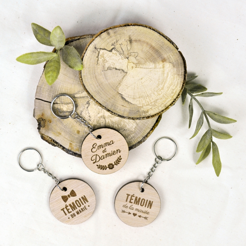 Futurs mariés, offrez à vos témoins de mariage un cadeau unique et original : un porte-clé personnalisé en bois. Une jolie attention qu'il/elle gardera en souvenir de votre plus beau jour. Ce porte-clé en bois en forme de coeur a l'inscription "Super témoin" gravé au recto et le prénom de votre choix au verso.