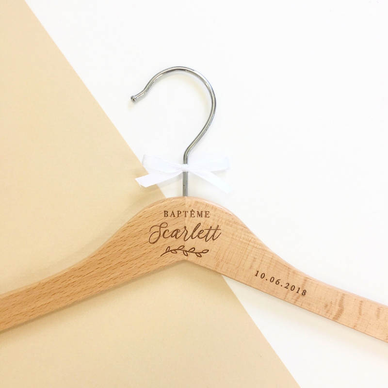La commande comprend la gravure du cintre enfant avec les textes de votre choix.