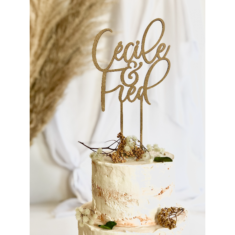 La commande du cake topper comprend la personnalisation avec vos prénoms, ainsi que sa fabrication.
