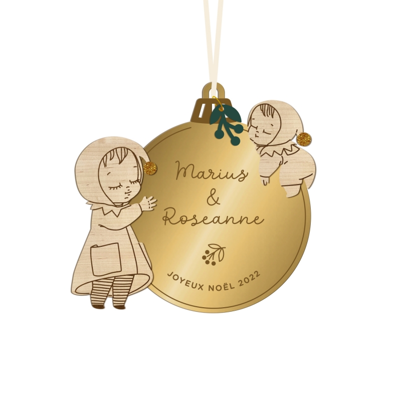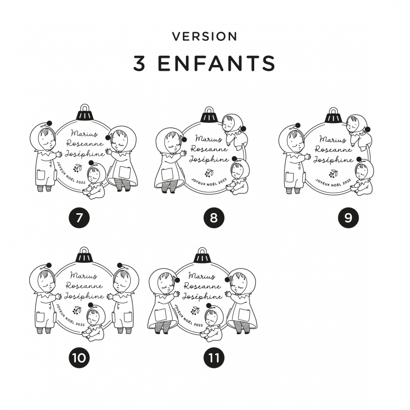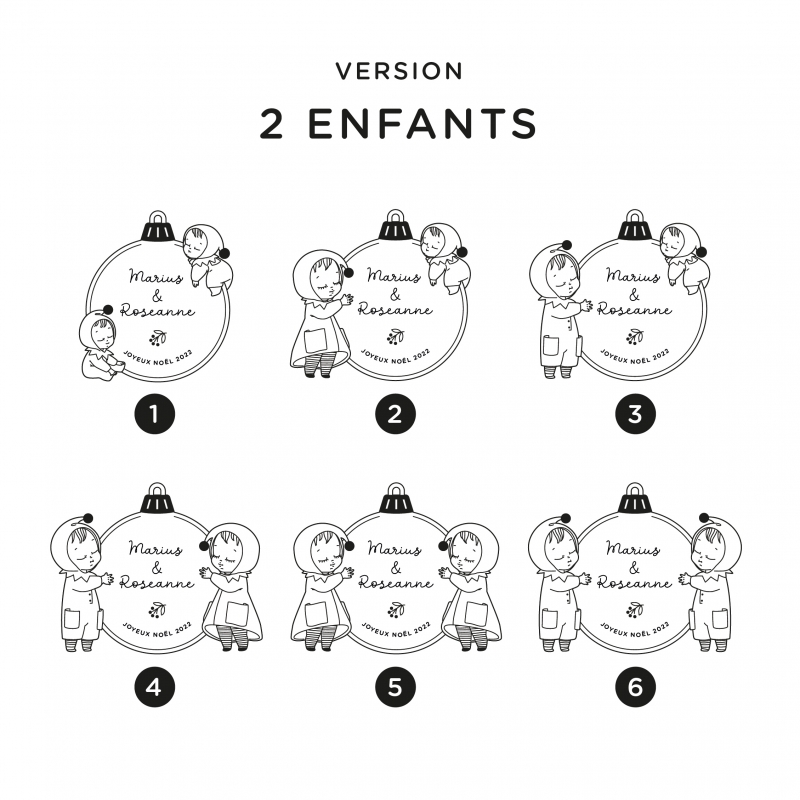 En collaboration avec Marie Savart Illustrations, nous vous proposons une boule de Noël complètement inédite : une suspension illustrant votre petite tribu ! Ainsi, vous pourrez avoir une boule de Noël à l'image de vos enfants (2 ou 3). Au milieu, les prénoms seront finement gravés pour rendre cette suspension unique et 100% à votre image !