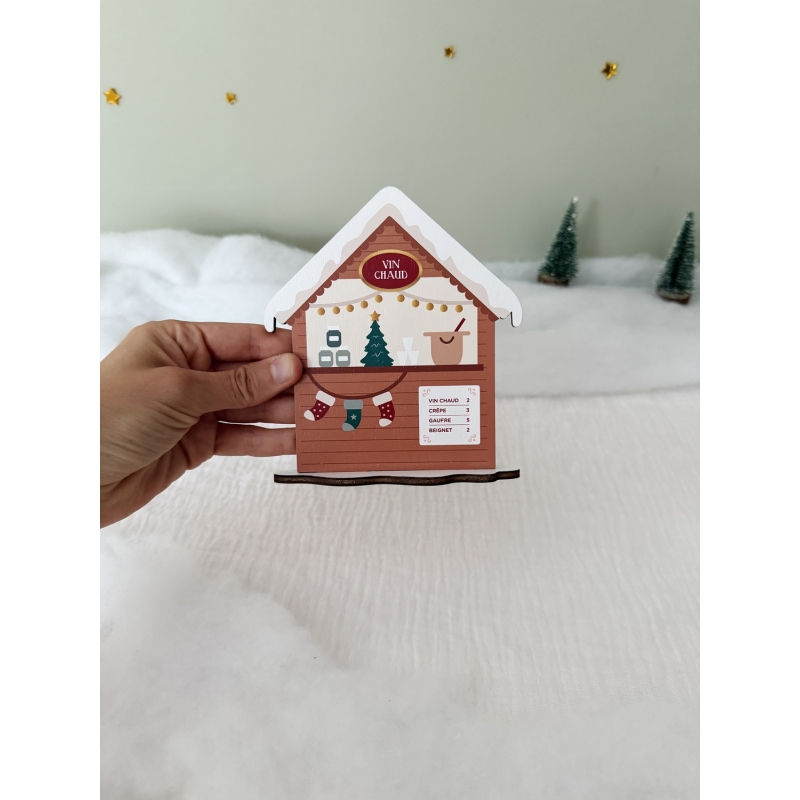 Apportez l’authenticité des marchés d’hiver à votre Mini monde de Noël en bois avec ce chalet miniature. Inspiré des chalets traditionnels alsaciens, il évoque les senteurs de vin chaud, de crêpes et de gaufres partagées pendant les fêtes. Une pièce artisanale incontournable pour enrichir votre village de Noël et recréer une ambiance conviviale à la maison.