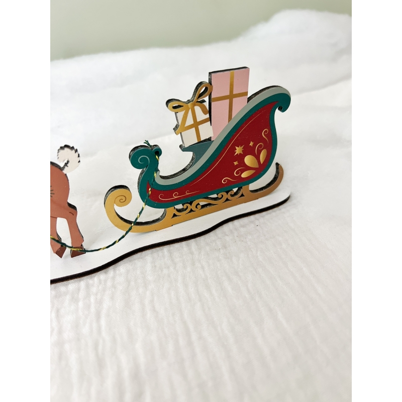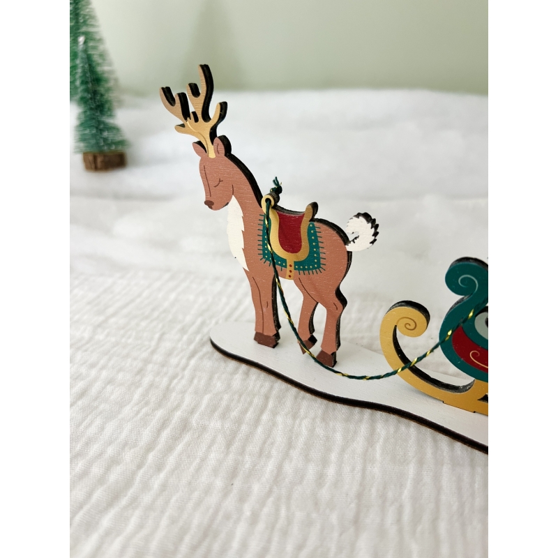 Apportez la touche finale à votre village de Noël en bois avec le traîneau du Père Noël et son renne !