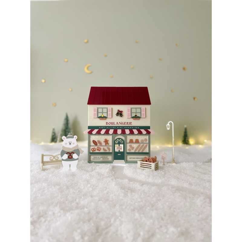 Dans le mini monde de Noël, on demande Gaston l'ourson gourmand ! Il est sorti un soir d'hiver pour faire un tour de grande roue à la fête foraine du village et dévorer ensuite un bon bretzel.