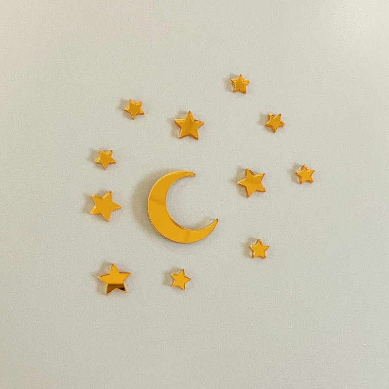 Pour rajouter de la magie dans votre mini monde de Noël, nous vous proposons des étoiles et une lune en plexiglas miroir or. Vous pourrez les coller directement sur un mur ou du l'arrière plan de votre village.