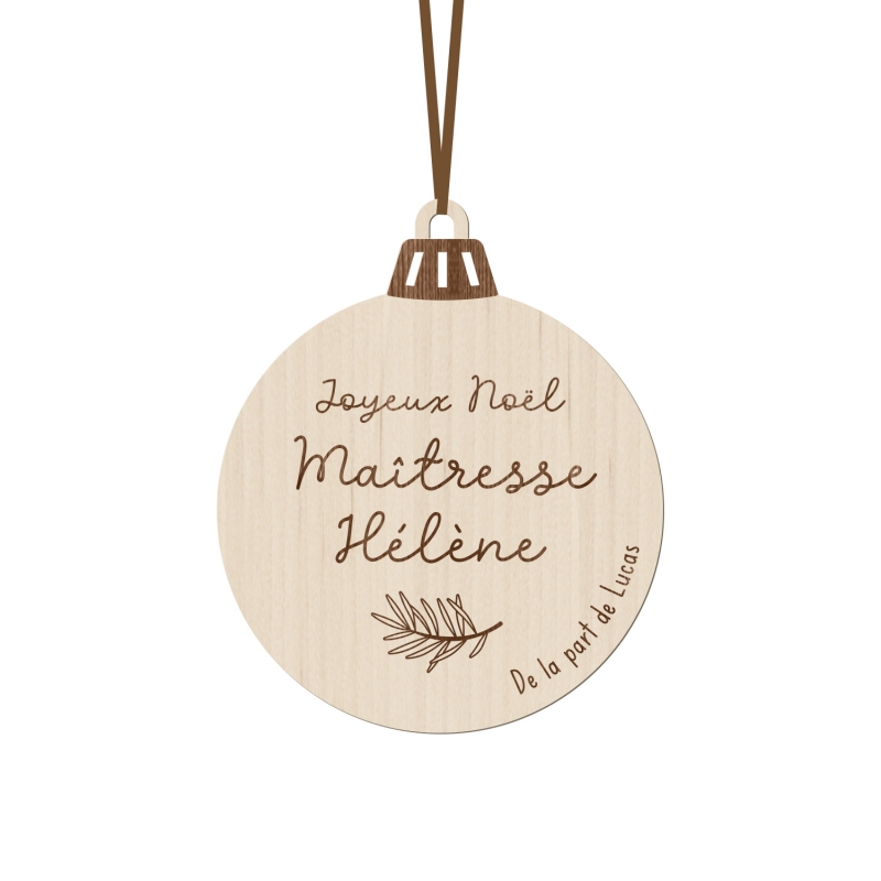 Pour Noël, offrez une jolie suspension personnalisée à la maîtresse, l'astem, la nounou ou le personnel de crèche qui aident à faire grandir votre enfant quotidiennement. Le modèle Branche de sapin est à la fois sobre et élégant, il s'intègre parfaitement dans toutes les décorations. Une douce attention qui leur fera plaisir et qui laissera un souvenir original de votre enfant.