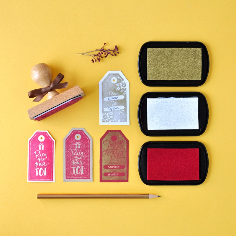 Créez vos propres étiquettes grâce à ce joli tampon au motif étiquette. Mignon, mais également très pratique, vous pourrez le réutiliser chaque année en mixant les couleurs d'encre et de papier !