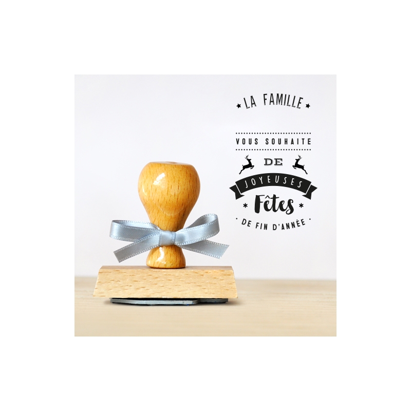 Souhaitez de bonnes fêtes de fin d'année à vos proches grâce à ce tampon personnalisé. Avec cet outil multi-usages, vous pourrez customiser des enveloppes, des cartes de voeux, des serviettes en papier ou votre décoration. Un espace vide est dédié pour que vous puissiez indiquer votre nom de famille au stylo.