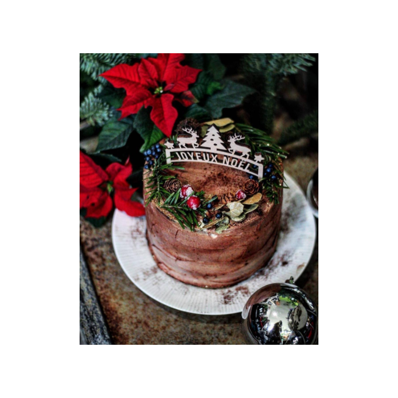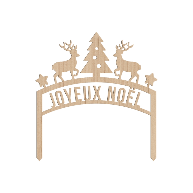 Ajoutez un joli cake topper en bois pour décorer votre bûche de Noël. Ce modèle vous séduira pour son côté poétique illustré d'étoiles, de majestueux cerfs et d'un sapin de Noël. Grâce à cette figurine en bois, vous surprendrez à coup sûr tous vos invités !