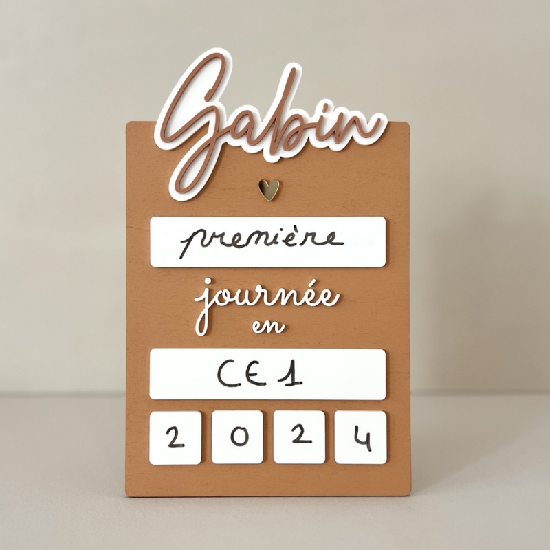 La commande comprend la personnalisation de la pancarte avec le prénom de votre enfant, ainsi que sa réalisation dans le coloris choisi dans le menu déroulant. La pancarte rentrée est livrée assemblée, prête à l'emploi.