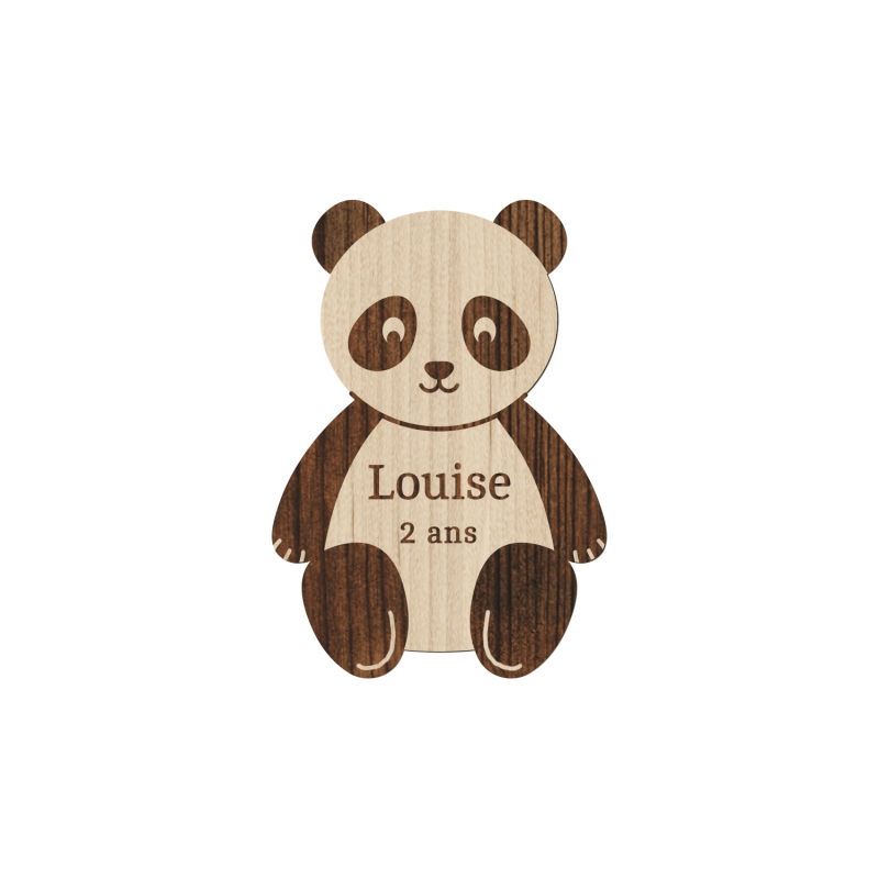 Pour la naissance, le baptême ou l'anniversaire de votre enfant, personnalisez de jolis magnets en bois en forme de panda. Que ce soit en guise de cadeaux d'invités ou de save the date, ils feront leur effet auprès de vos proches !