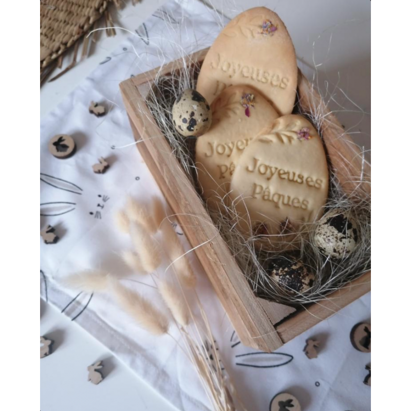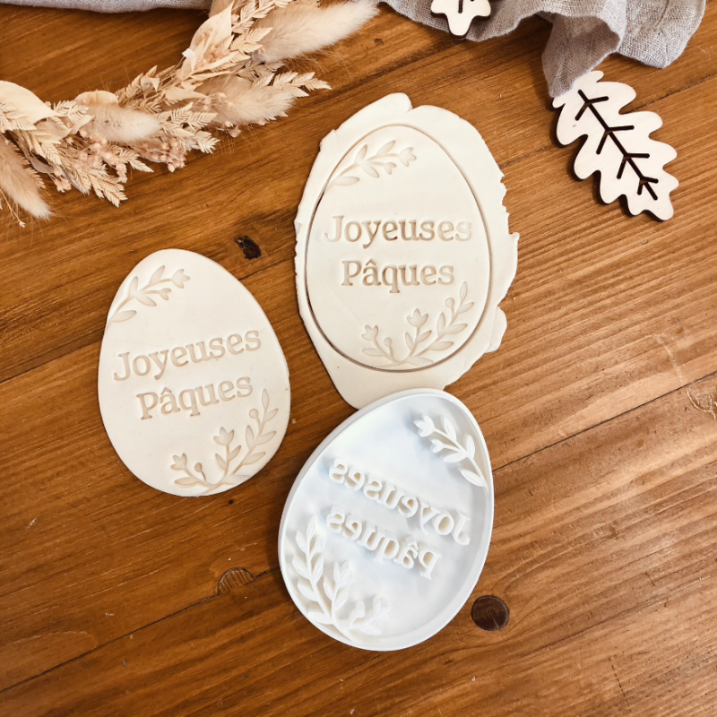 Emporte-pièce en forme d'oeuf de Pâques vous permettant de réaliser des biscuits maison originaux. Finissez votre repas de Pâques sur une note sucré grâce à de beaux sablés en forme d'oeuf de Pâques au design végétal et printanier.