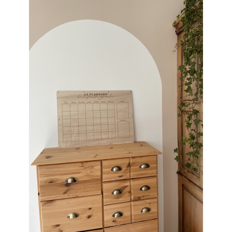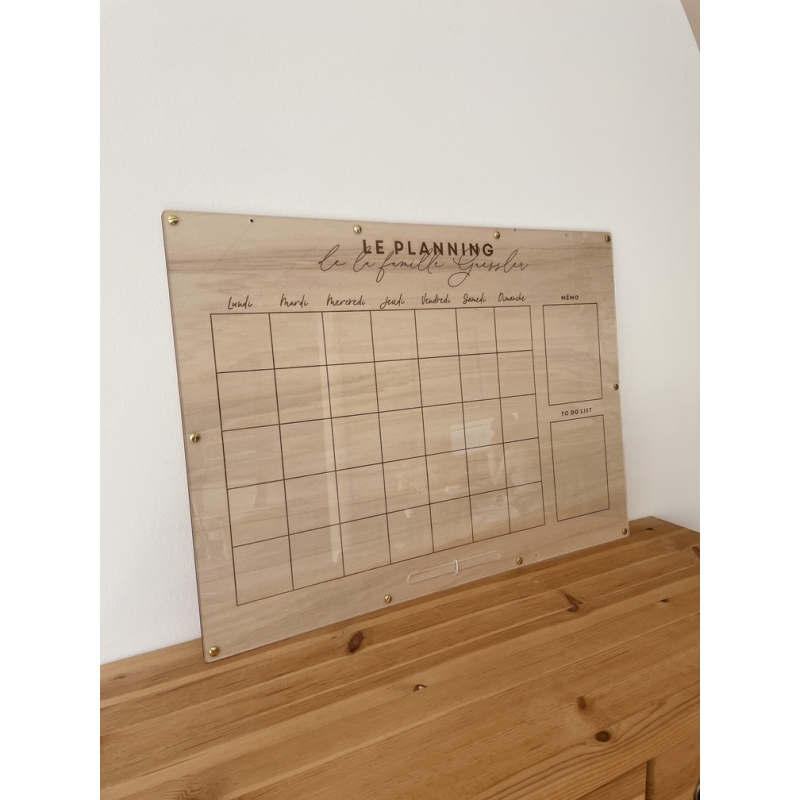 Chaque planning est réalisé sur-mesure selon les options sélectionnées dans le menu déroulant et selon les informations fournies par vos soins. Ainsi, chaque tableau en bois aura une dimension différente, à savoir :